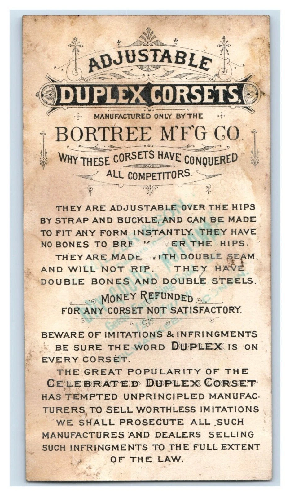 The editor could hardly contain his excitement when he discovered Bortrees’s Adjustable Duplex Corset—'undeniably the best on the market' (and how would he know?) was sold there for only $1.25. Who says you can’t buy curves?